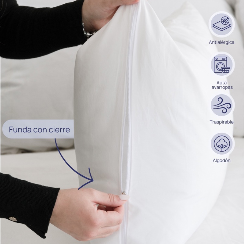 Incluye 2 almohadas Confort estilo hoteleras de regalo, mullidas y ergonómicas, con relleno de Vellón Soft que imita la pluma sin deformarse. Aportan suavidad y soporte ideal para cuello y cabeza, favoreciendo una postura correcta y una experiencia de descanso tipo hotel en tu casa.
