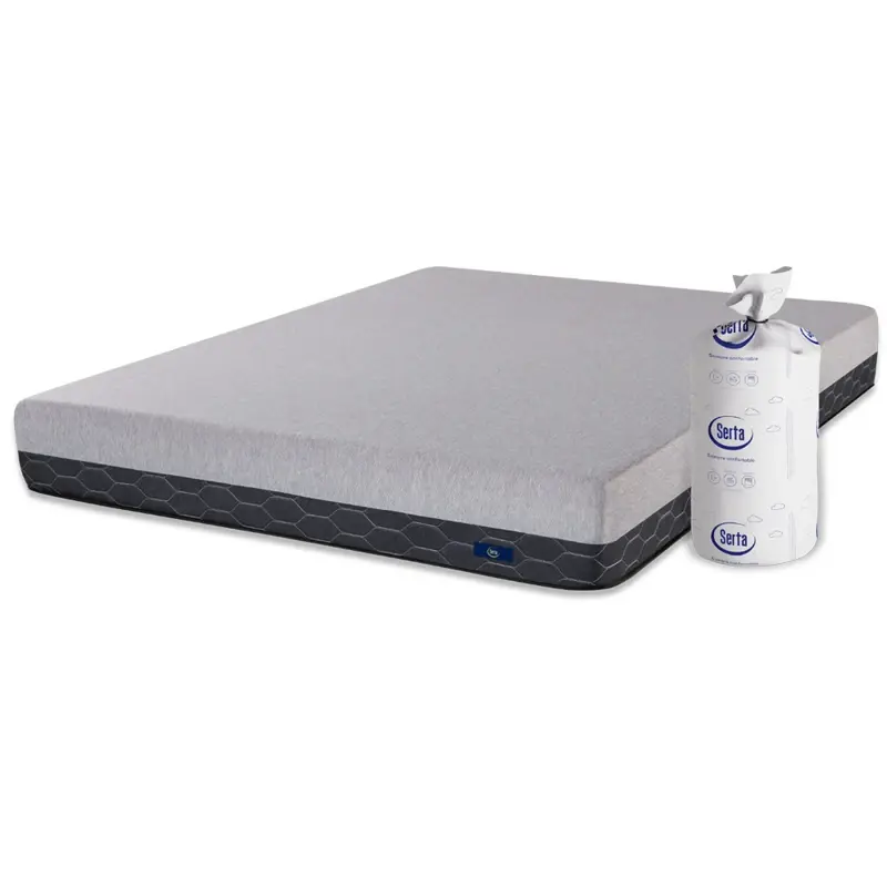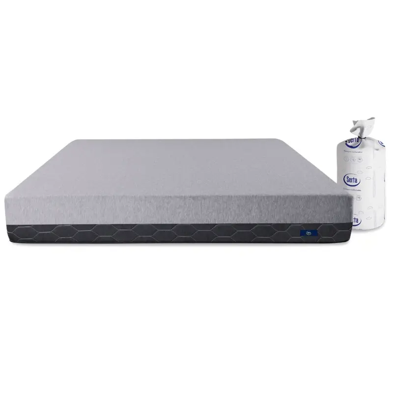 El colchón Kennett de 2 plazas de Serta presenta una superficie suave y confortable, gracias a su funda de tejido de punto de alta calidad. Este diseño maximiza la suavidad al tacto y brinda una experiencia de descanso superior desde el primer momento. Su formato compactado en bolsa facilita el traslado y la instalación, manteniendo intactas todas sus prestaciones.