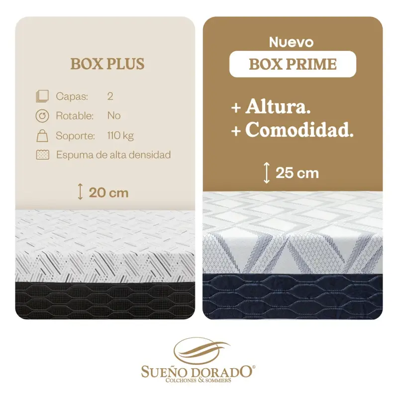 Colchón en Caja Sueño Dorado Box Prime 2 Plazas 140x190 Espuma Alta Densidad