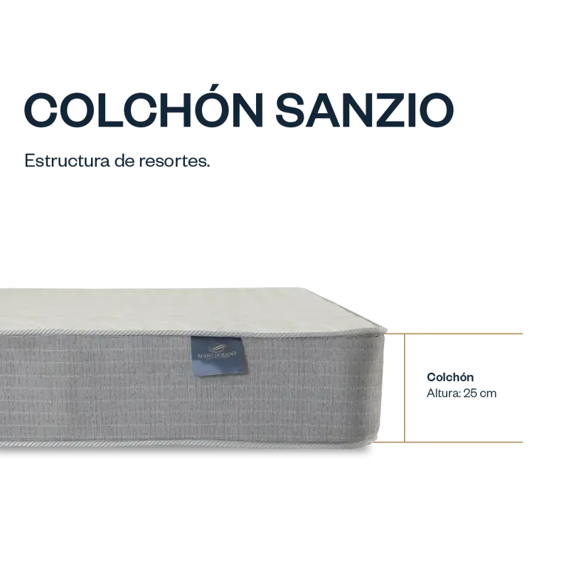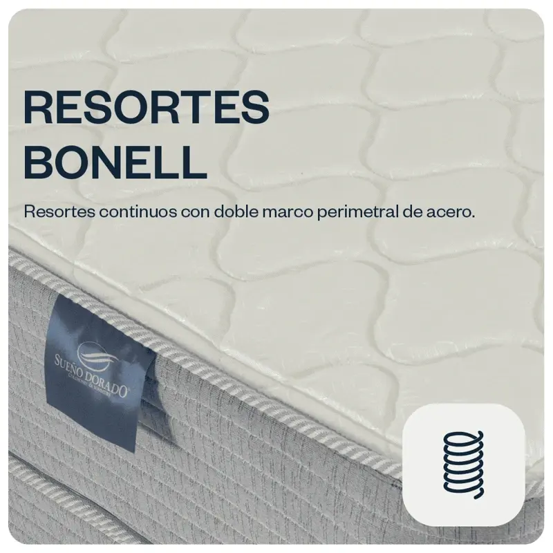 3- Estructura central de resortes tipo bonell con distribución continua + marco perimetral de espuma de alta densidad para mayor solidez y vida útil.