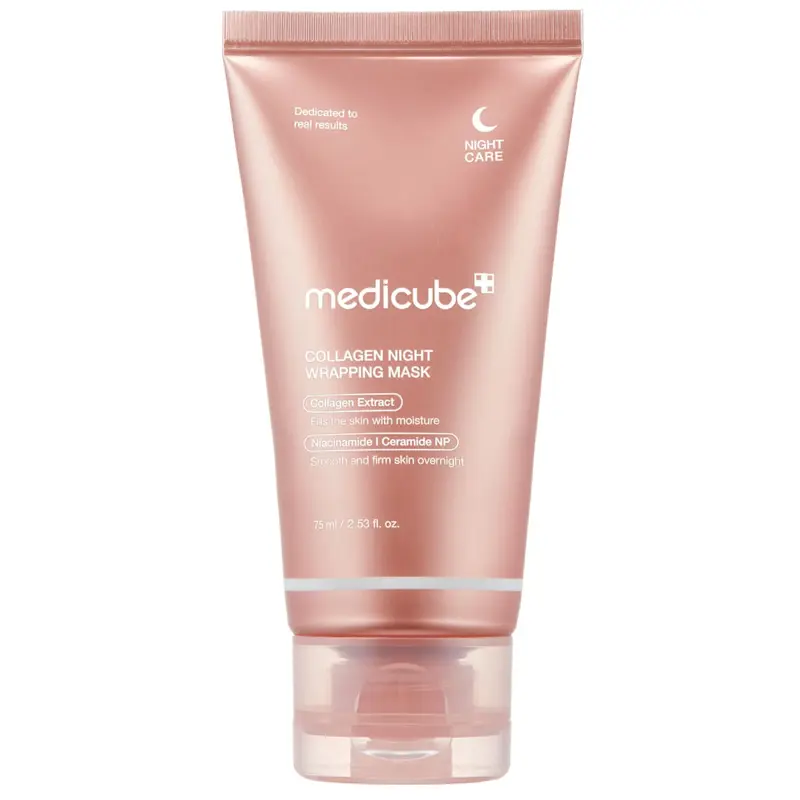 La Collagen Night Wrapping Mask es una mascarilla facial nocturna tipo peel-off que actúa como un velo invisible durante 8 horas para mejorar visiblemente la firmeza, hidratación y luminosidad de la piel. Su textura en gel forma una película suave (“wrapping film”) que se seca completamente y se retira en una sola pieza al despertar. Ideal para todo tipo de piel —incluso las más sensibles— gracias a su formulación sin fragancias ni colorantes artificiales.