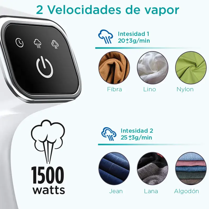 - Vapor vertical y horizontal para adaptarse a diferentes tipos de prendas.