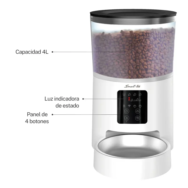 - Capacidad para 4L de alimento: Ideal para tener suficiente comida disponible para varios días.