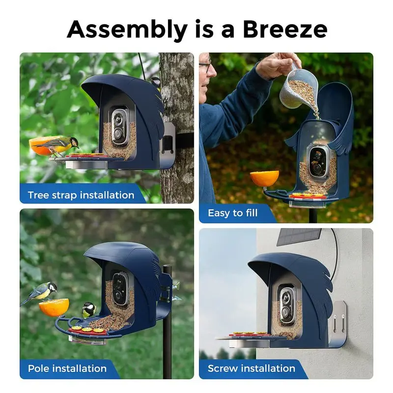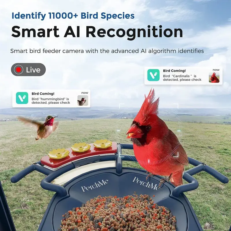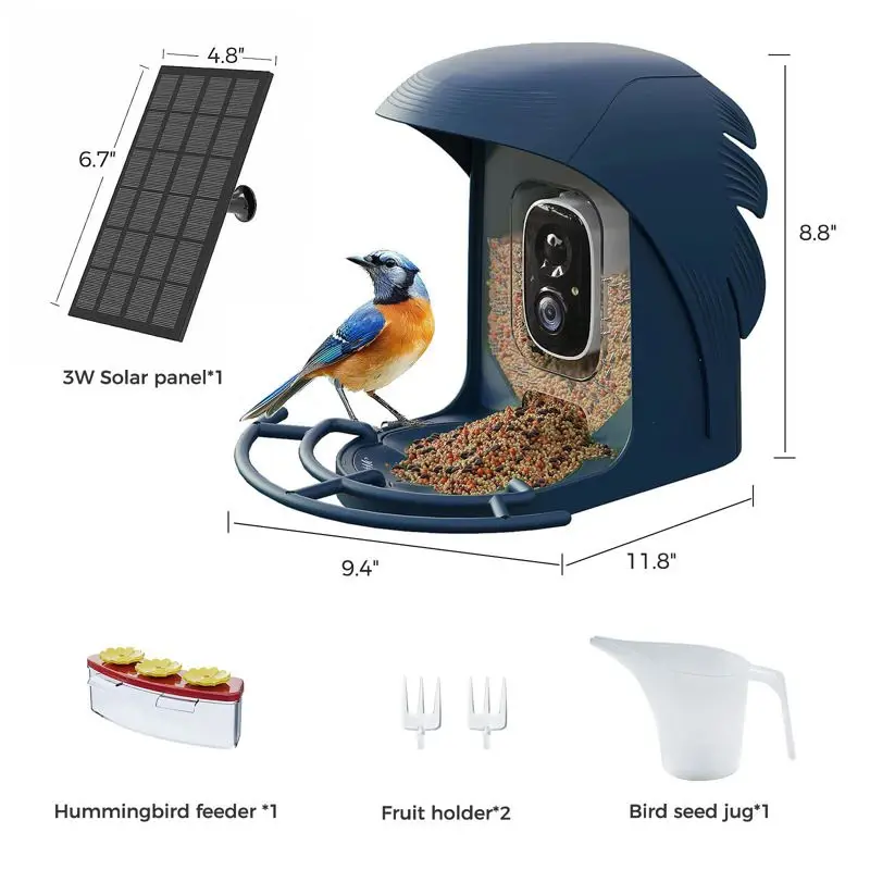 - ?Identificación mediante IA?El comedero inteligente para pájaros emplea tecnología de inteligencia artificial de última generación para identificar una amplia gama de más de 10 000 especies de aves. Gracias al uso de cámaras y algoritmos avanzados de reconocimiento de imágenes, este dispositivo distingue con precisión varios tipos de aves y ofrece a los usuarios una visión más profunda de sus amigos emplumados. (Tenga en cuenta que este servicio requiere una suscripción después de un mes de uso gratuito)