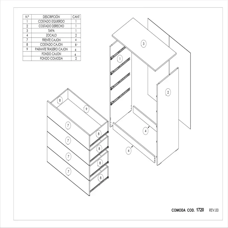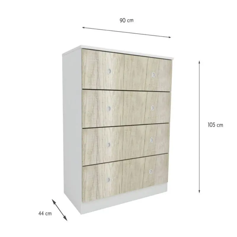 Comoda Cajonera de Melamina 90 cm con 4 cajones de guardado, con amplia capacidad.