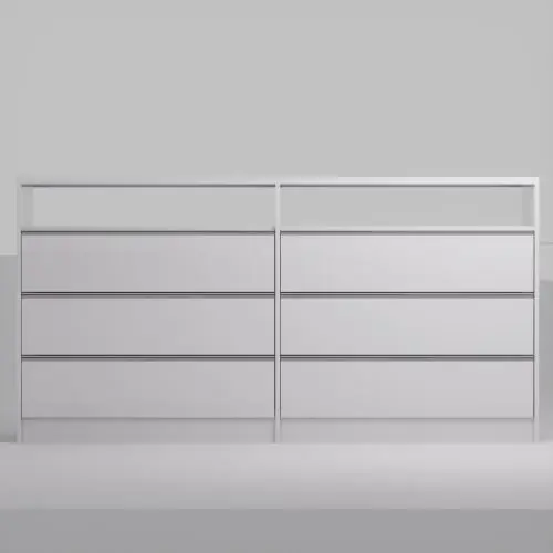 Cuenta con 6 amplios cajones que poseen gran capacidad de guardado, donde cada uno cuenta con perfilería de aluminio anodizado y un sistema de apertura con correderas telescópicas que permiten un deslizamiento suave.