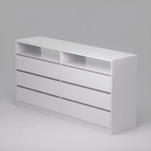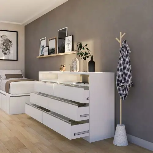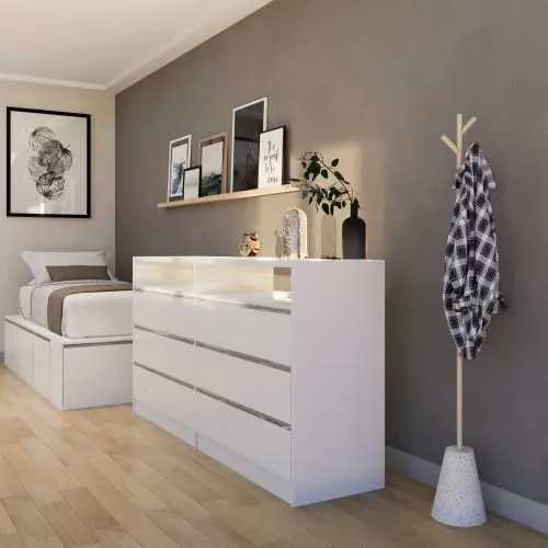 Una cómoda funcional y moderna con un diseño simple que se adapta a cualquier dormitorio.