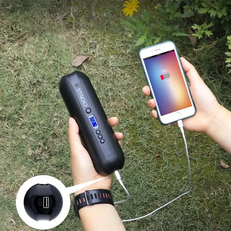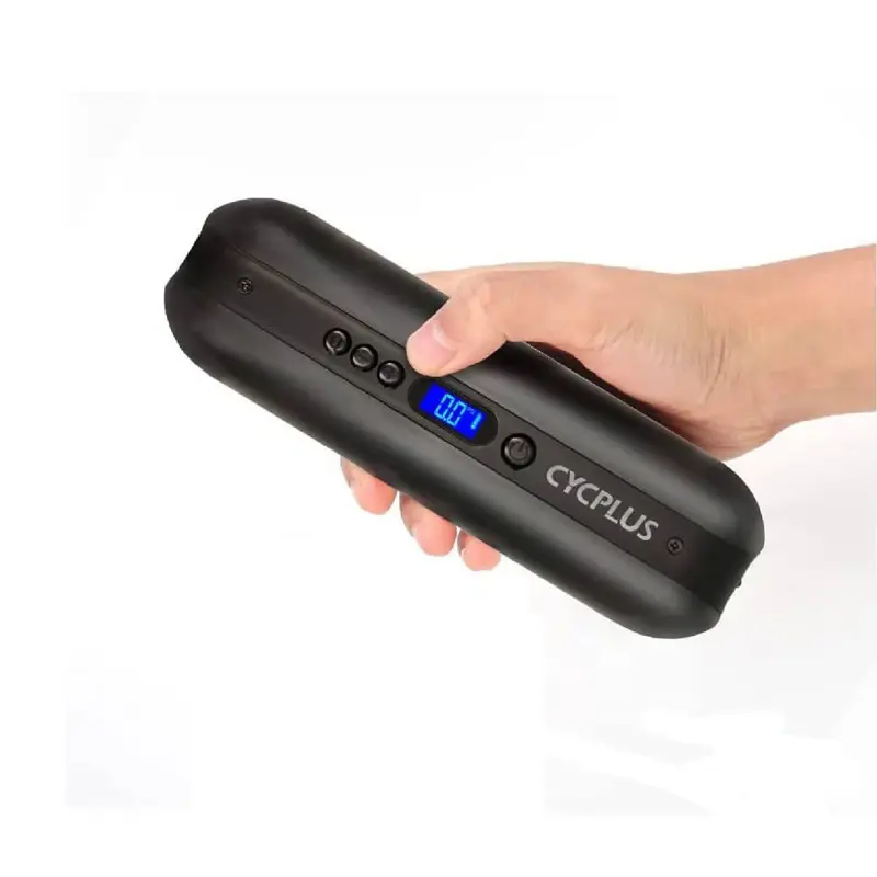 El Mini Compresor Inflador Portátil Cycplus es un dispositivo versátil y práctico, ideal para inflar neumáticos de auto, moto, bicicletas de competición y paseo, así como pelotas. Su diseño portátil y compacto te permite llevarlo a donde quieras, y su batería de 2600mAh / 7.4V te permite inflar hasta 3 ruedas de auto con una sola carga. Se carga directamente a través de un cable USB tipo C.
