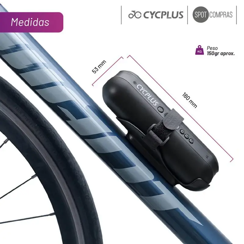 El Mini Compresor Inflador Portátil Cycplus es un dispositivo versátil y práctico, ideal para inflar neumáticos de auto, moto, bicicletas de competición y paseo, así como pelotas. Su diseño portátil y compacto te permite llevarlo a donde quieras, y su batería de 2600mAh / 7.4V te permite inflar hasta 3 ruedas de auto con una sola carga. Se carga directamente a través de un cable USB tipo C.