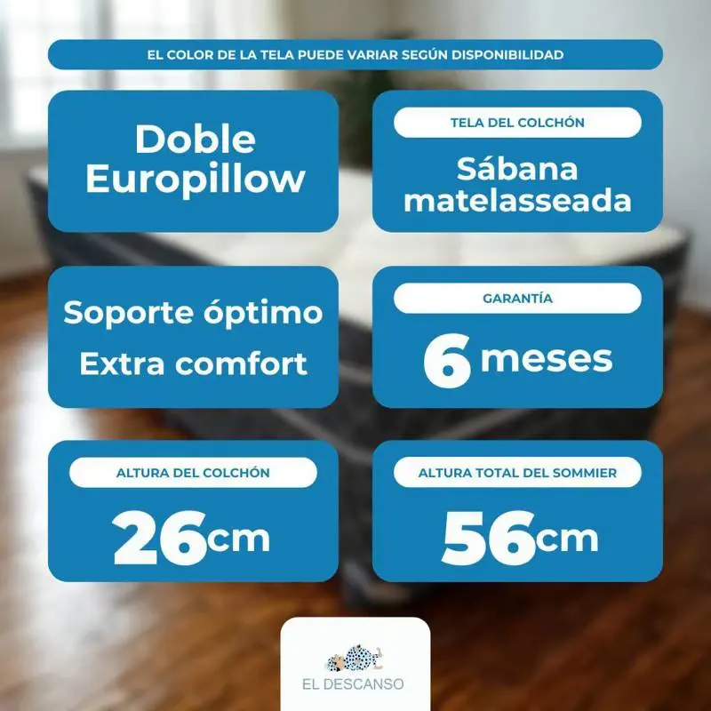 Descubrí el equilibrio ideal entre confort y durabilidad con este sommier de espuma media de alta calidad. Su colchón de 26 cm incorpora un exclusivo doble Europillow que brinda una suavidad excepcional y soporte óptimo para un descanso profundo y reparador. La base robusta garantiza estabilidad noche tras noche.Garantía de fábrica . El diseño de la tela puede variar según stock.