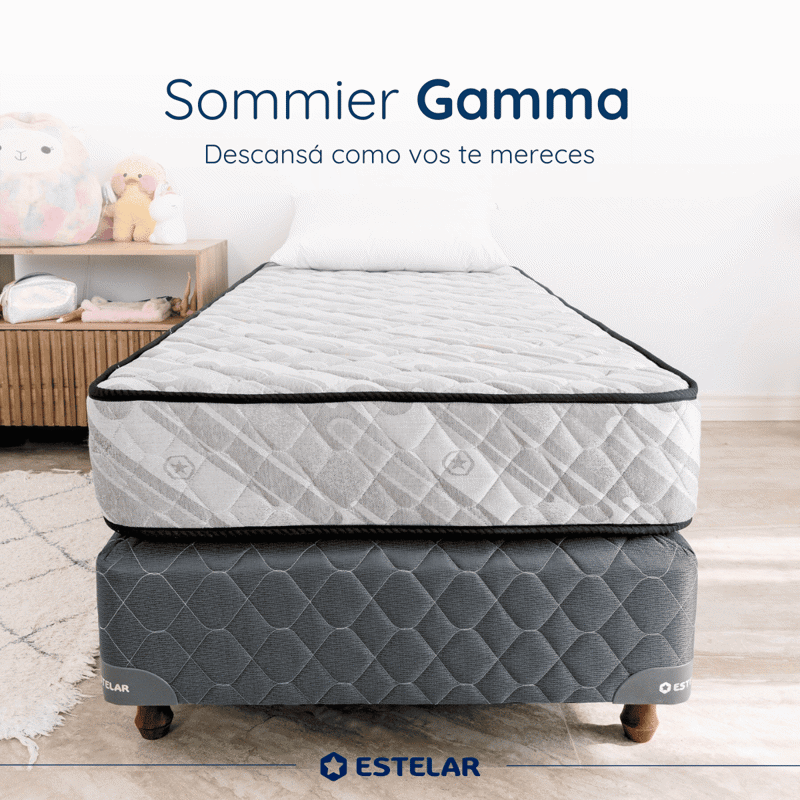 Mejorá tus noches con el conjunto sommier y colchón Estelar Gamma de 1 plaza y media , la opción inteligente para quienes buscan confort, calidad y precio en un solo producto.