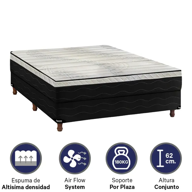 Conjunto compuesto por el colchón Titanium exclusivo de Kavanag diseñado para soportar hasta 180 Kg por plaza