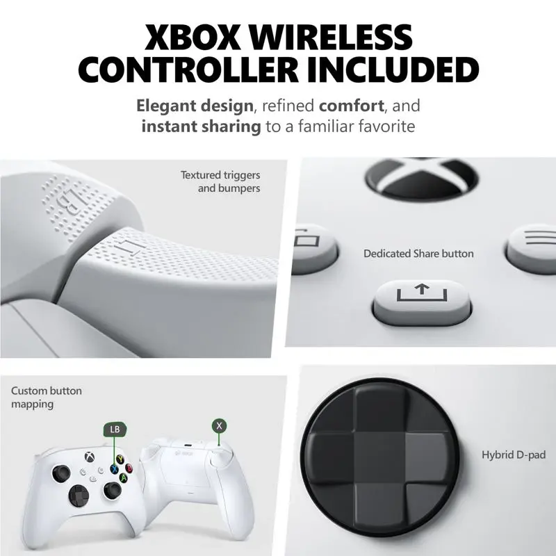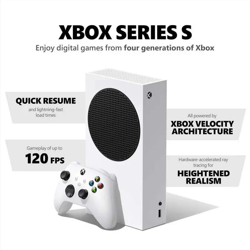- XBOX SERIES S: disfruta de la mejor relacion calidad-precio en los juegos con la Xbox Series S, que incluye un SSD personalizado de 512 GB.