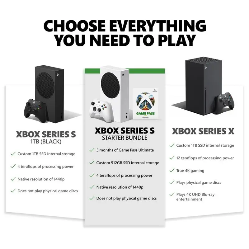 - GAME PASS ULTIMATE: Sumergete en el mundo de Xbox con todo lo que necesitas para jugar, incluida una Xbox Series S y cientos de juegos de alta calidad con 3 meses de Game Pass Ultimate. *
