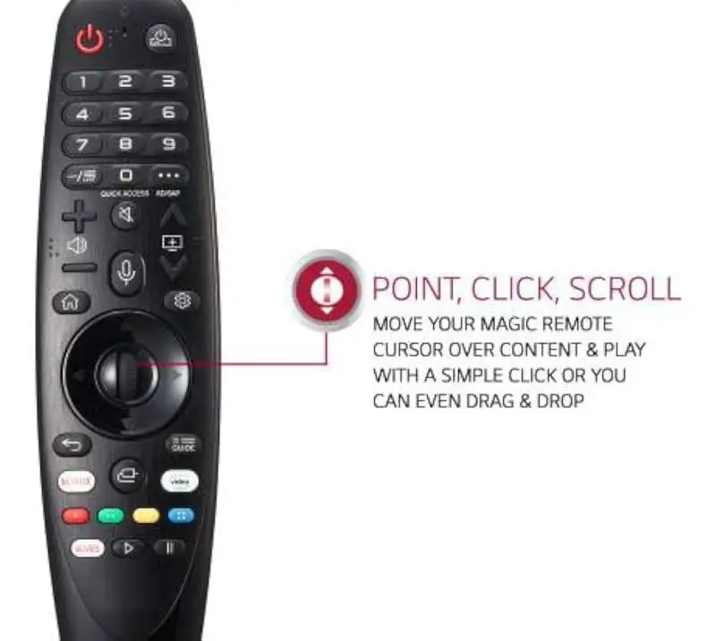 Magic Remote es el compañero perfecto para tu televisor inteligente LG AI ThinQ porque te permite simplemente señalar, hacer clic, desplazarte o usar comandos de voz para hacer todo lo que te ofrece el televisor inteligente LG AI ThinQ. Y eso es bastante.