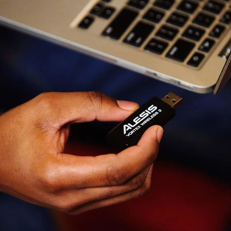 - El receptor USB incluido crea una conexion inalambrica a cualquier Mac o PC con un puerto host USB. La correa de guitarra estandar se fija en el cuello y el cuerpo