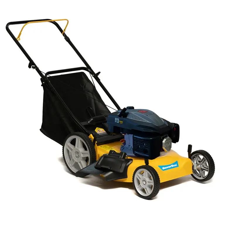 Cortadora de césped con motor a combustión, Arranque manual retráctil con descompresor, equipado con sistema de freno automático que le proporciona mayor seguridad. Cortadora de césped con motor a combustión, con nuevo sistema 3 en 1. 3 OPCIONES DE CORTE: • Descarga lateral: el césped cortado es descargado en el jardín, ideal para cortar césped alto. • Sistema recolector: descarga trasera con bolsa recolectora reforzada de tela. Recolecta el césped cortado, ahorrando el trabajo de juntado y limpieza. • Triturador MULCHING: los trozos de césped cortados, al circular dentro de la carcasa se trituran y se incorporan nuevamente al suelo como fertilizante. Su manija es ergonómica para mayor comodidad del usuario y plegable para guardar la máquina en forma práctica y sin que ocupe demasiado lugar. Motor Fórmula 650, con 200 cc. de cilindrada, monocilíndrico horizontal, 4 tiempos OHV. Lámina de acero especial de 2 mm de espesura. Ruedas delanteras de 8`` y traseras de 12`` con rodamientos. Material de las ruedas: Polipropileno y PVC Regulación de altura de corte de 5 posiciones, con sistema de ajuste de altura independiente en las 4 ruedas.