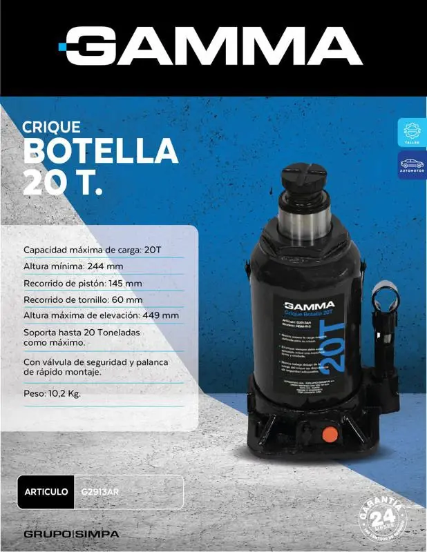Este crique de botella destaca por su estructura robusta, fabricada con materiales de alta resistencia que garantizan una larga vida útil incluso en condiciones de uso intensivo. Su válvula de seguridad integrada protege contra sobrecargas, ofreciendo un funcionamiento seguro y confiable en cada operación.