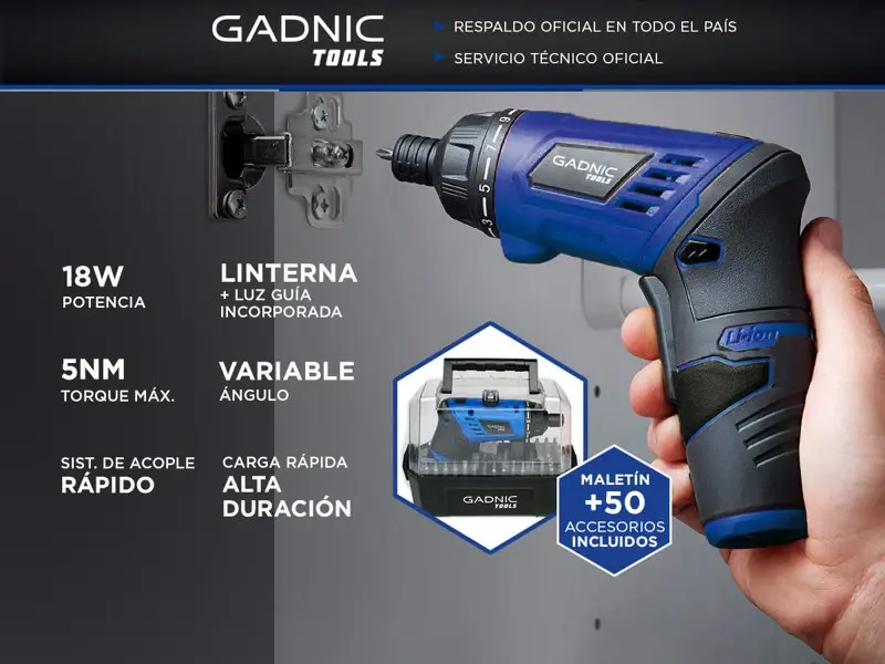 Especificaciones Atornillador a Batería Gadnic Tools D5 Pro Inalámbrico 3- DESELE01 6v Litio + Accesorios- ------------------------------------------------------------------------------------------ Juego Set de Herramientas Gadnic TS200 189pcs- KHERRAM1 Medidas del estuche: 24- ------------------------------------------------------------------------------------------