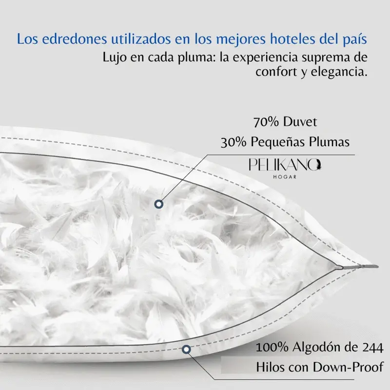 Material de Calidad: Con un relleno de 70% duvet y 30% pequeñas plumas naturales de primera calidad de origen europeo, este edredón asegura una sensación de suavidad y confort inigualables.
