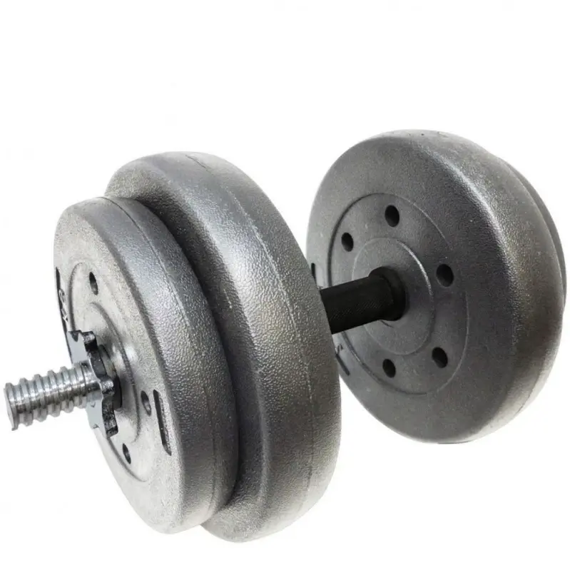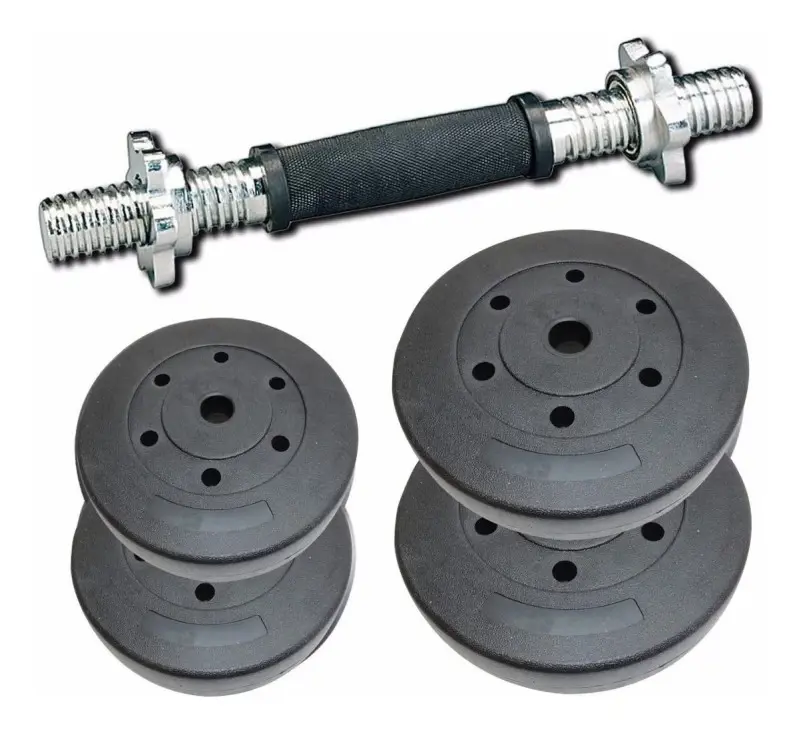 Mancuerna rosca metálica maciza con mango de goma antideslizante.