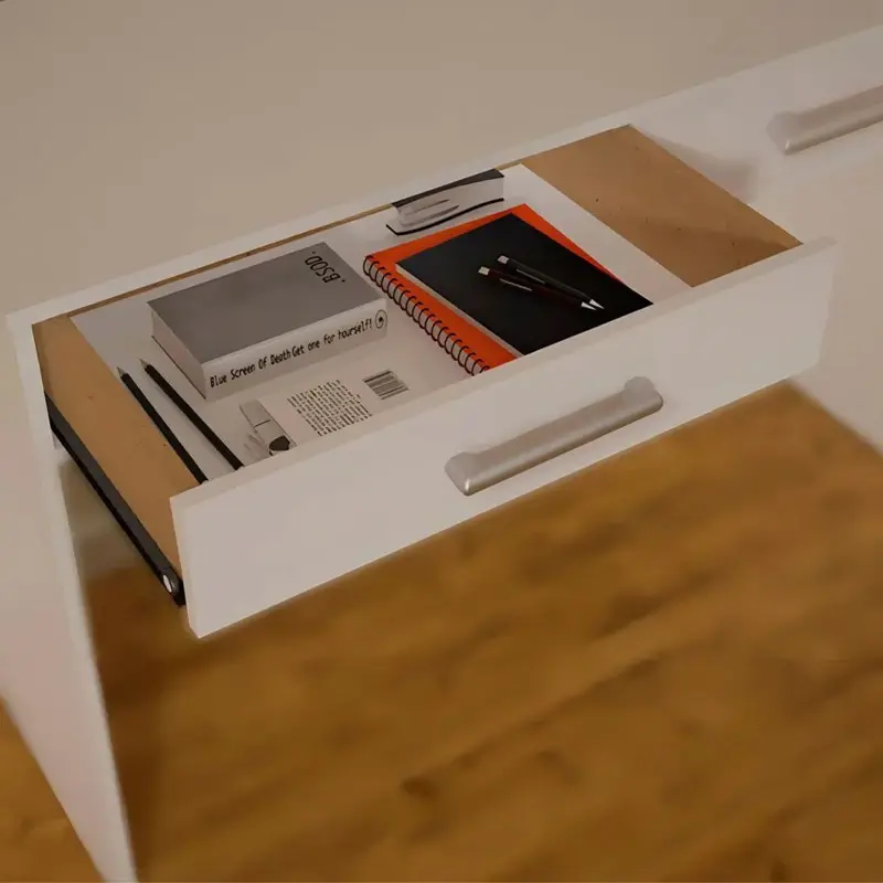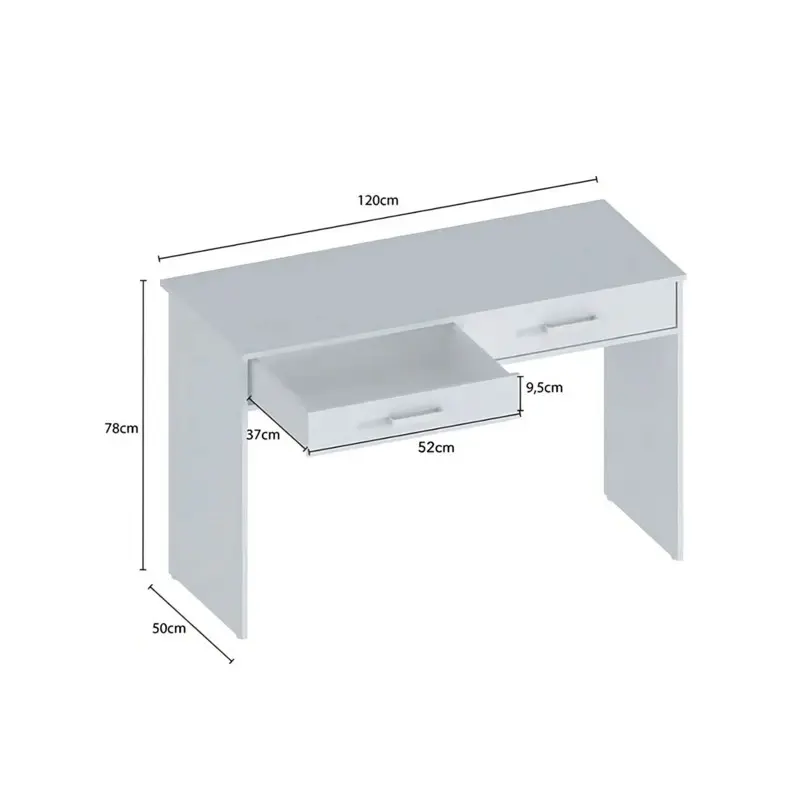 Características del producto Profundidad: 50 cm Ancho: 120 cm Altura: 78 cm Requiere ensamblado: Sí Cajones: Sí Características principales Marca: Centro Estant Modelo: Escritorio paris Altura x Ancho x Profundidad: 78 cm x 120 cm x 50 cm Color: Blanco Otros Materiales del escritorio: Melamina Estilo: Moderno Requiere ensamblado: Sí Con cajones: Sí Cantidad de cajones: 2 Incluye biblioteca: No Es flotante: No Es en forma de L: No Es gamer: No Con luces LED: No Incluye manual de instrucciones: Sí Incluye kit de instalación: Sí Peso: 25 kg Material de las correderas: Metal Con puertas: No Con cerradura: No Incluye llaves: No Con estantes: No Con estante para CPU: No Con ruedas: No Es plegable: No Con bandeja deslizante: No