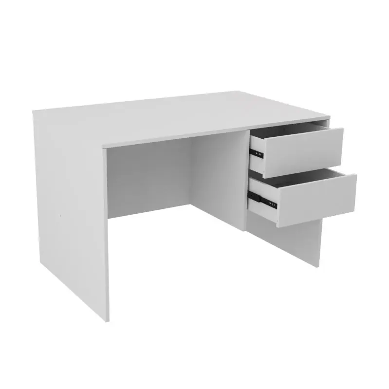 Escritorio con refuerzo abajo Posee 2 cajones lado derecho Escritorio con refuerzo abajo Posee 2 cajones lado derecho DESTACADOS:- Tapacantos de PVC 0,45 mm para proteger los cantos.- Muebles para armar.