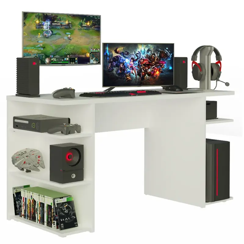 Este modelo sobresale por su diseño moderno y amplio espacio, lo que proporciona mayor comodidad, está diseñado para elevar su experiencia de juego, ya que está reforzado y posee espacio para 2 monitores, teclado, mouse, altavoces, CPU, regulador, consola, entre otros, lo que lo hace ideal para los jugadores más exigentes.