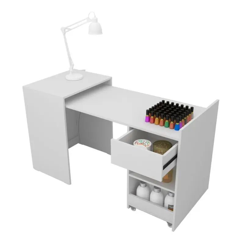 Escritorio Plegable Extensible Multiuso Mesa Manicura Blanco - MUEBLES CORSA