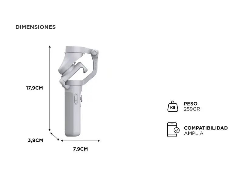 Peso (cardán): 259 g (sin incluir luz de relleno ni trípode)