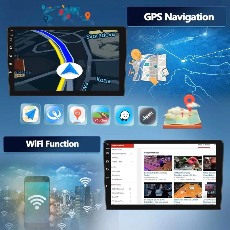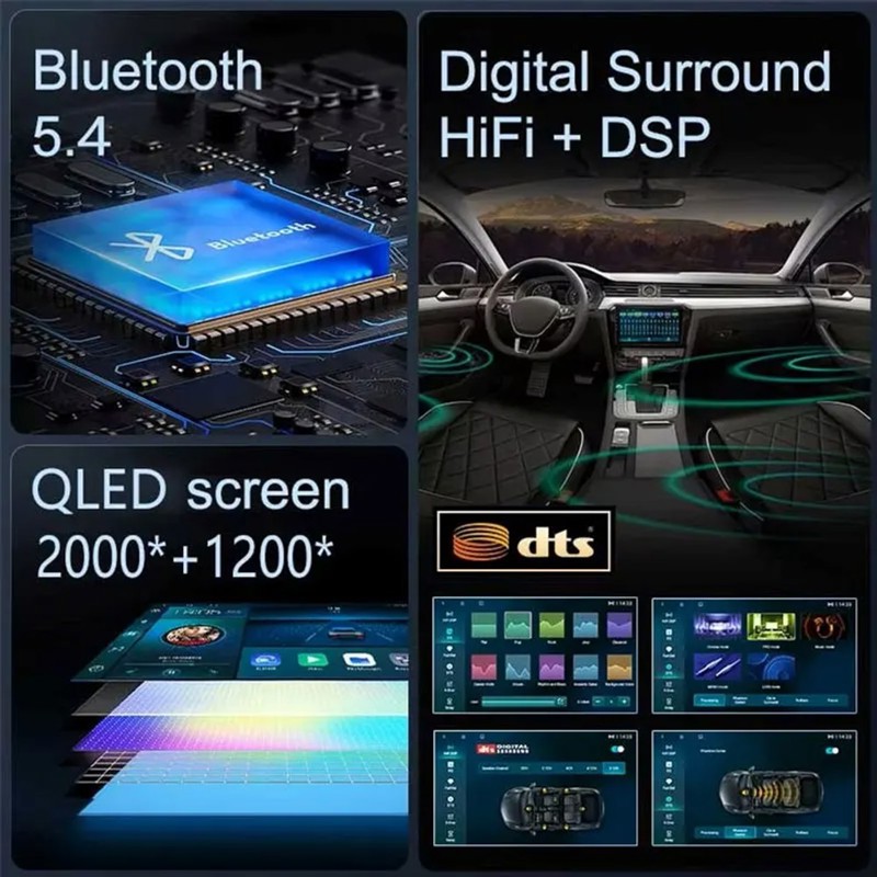 Función multimedia avanzada ideal para vehículos como Audi, BMW, y Mercedes Benz. Esta unidad mantiene la cámara retrovisora de fábrica y es compatible con Android Auto y Apple CarPlay inalámbrico. Te permite dividir la pantalla, tiene Bluetooth integrado, navegación GPS, radio FM RDS, DSP, y WiFi. También dispone de salida RCA.