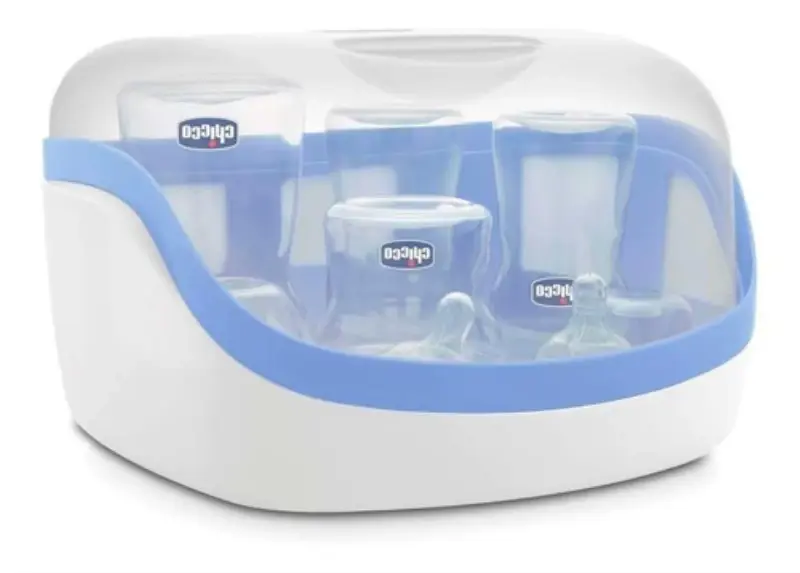La nueva línea de esterilizadores Chicco se adapta a las necesidades de la madre y el bebé. Esteriliza hasta 5 biberones WellBeing y 4 biberones Natural Feeling. Se adapta a la perfección a todos los tipos de microondas aprovechando así la practicidad y velocidad del microondas.