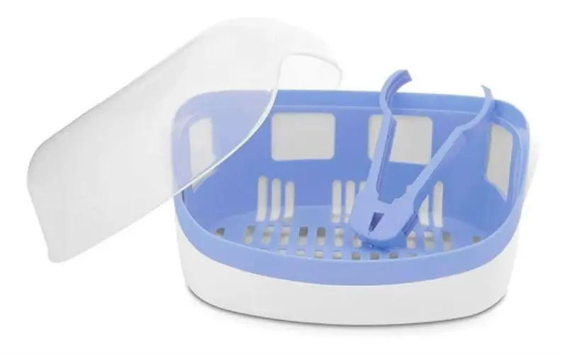 es un producto que simplifica la practica diaria de la esterilización. Se le permite desinfectar todos los objetos que entran en contacto con el niño y si es necesario, para mantenerlos protegidos, siempre y cuando no se levante la tapa