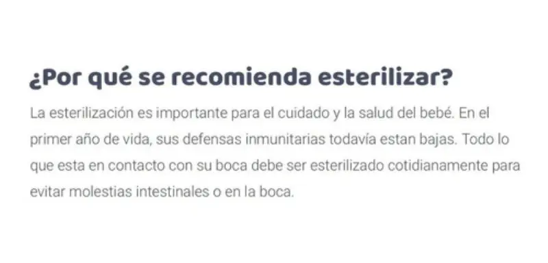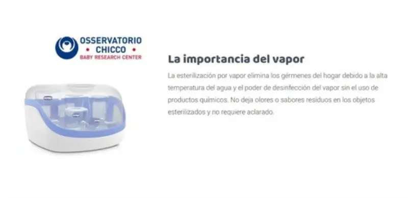 La esterilizacion a vapor elimina los germenes del hogar debido a la alta temperatura del agua y el poder de desinfeccion del vapor sin el uso de productos quimicos. No deja olores o sabores residuos en los objetos esterilizados y no requiere aclarado.