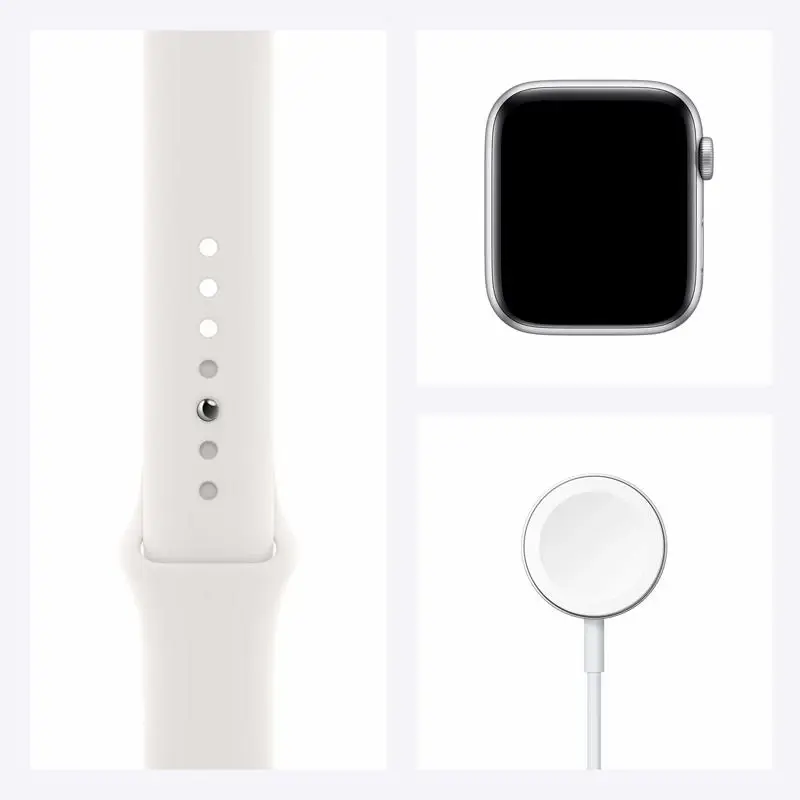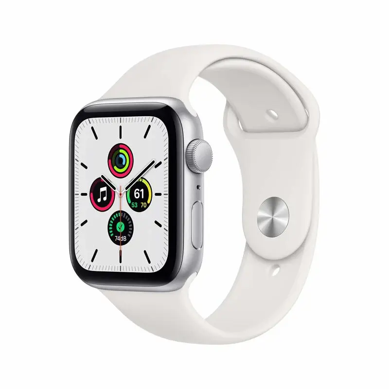 Mantente seguro, activo y saludable con el Apple Watch SE. El SE tiene la misma pantalla Retina OLED LTPO brillante que la Serie 6, lo que te brinda una pantalla brillante a simple vista, incluso a plena luz del sol. En ella, puedes ver todas tus métricas de estado físico, estadísticas de salud y notificaciones móviles. En lo que respecta a la salud, el pulsómetro óptico del SE puede mostrar indicadores de una posible afección médica con notificaciones cuando la frecuencia cardíaca es alta o baja. Además, admite hábitos saludables irregulares, como la detección del lavado de manos, que muestra una cuenta regresiva animada de 20 segundos mientras te frotas. Estar en forma es fundamental para mantenerse sano, y el Apple Watch SE tiene varias maneras de ayudarte a alcanzar tus objetivos. Activity Rings muestra tres anillos que corresponden al movimiento, el ejercicio y la posición de pie. Mantente en movimiento durante todo el día para conseguir nuevos récords personales a medida que vayas cerrando los anillos. También puedes elegir entre una variedad de ejercicios, como correr, nadar, hacer yoga, andar en bicicleta, etc. El reloj registra y registra sus métricas específicas. Ya sea en interiores o exteriores, el SE puede guiar por GPS e incluso proporcionar actualizaciones continuas de elevación en la pantalla. Mientras te mueves, elige entre una variedad de música, podcasts y audiolibros para entretenerte y, para mayor diversión, comparte tus anillos de actividad con tus amigos y desafíalos a participar en competiciones de actividades de 7 días. Durante todo el día, el Apple Watch SE te mantiene conectado con el mundo que te rodea. Cuando lo conectas con tu iPhone, puedes hacer llamadas y enviar mensajes de texto desde la muñeca, lo que te rodea con Maps, comprar artículos con Apple Pay y usar la voz para Siri. Hecho para durar en casi cualquier tipo de clima, el Apple Watch SE es resistente al agua hasta 164 pies. Usa sus 32 GB de almacenamiento integrado para usar apps, ver carátulas, escuchar música y mucho más.