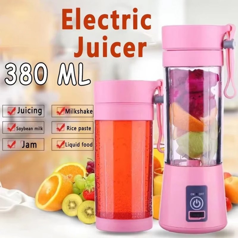 Exprimidor de frutas eléctrico y portátil con carga USB, ideal para batidos y jugos frescos tanto en casa como en la oficina. Con capacidad de 380 ml y diseño compacto, este exprimidor está hecho de materiales PP y ABS libres de BPA, asegurando un uso seguro y ecológico.