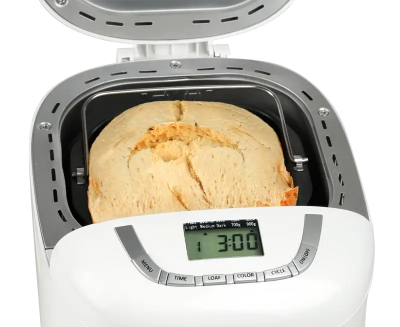| Funciones Disponibles | Amasa, mezcla y hornea panes, pizzas y tortas; cocina yogurt y mermeladas; 15 programas: Menú básico, Pan francés, Pan integral, Rápido, Pan dulce, Sin gluten, Masa, Amasar, Pastel, Sándwich, Especialidad, Yogurt, Hornear, Hecho en casa. |