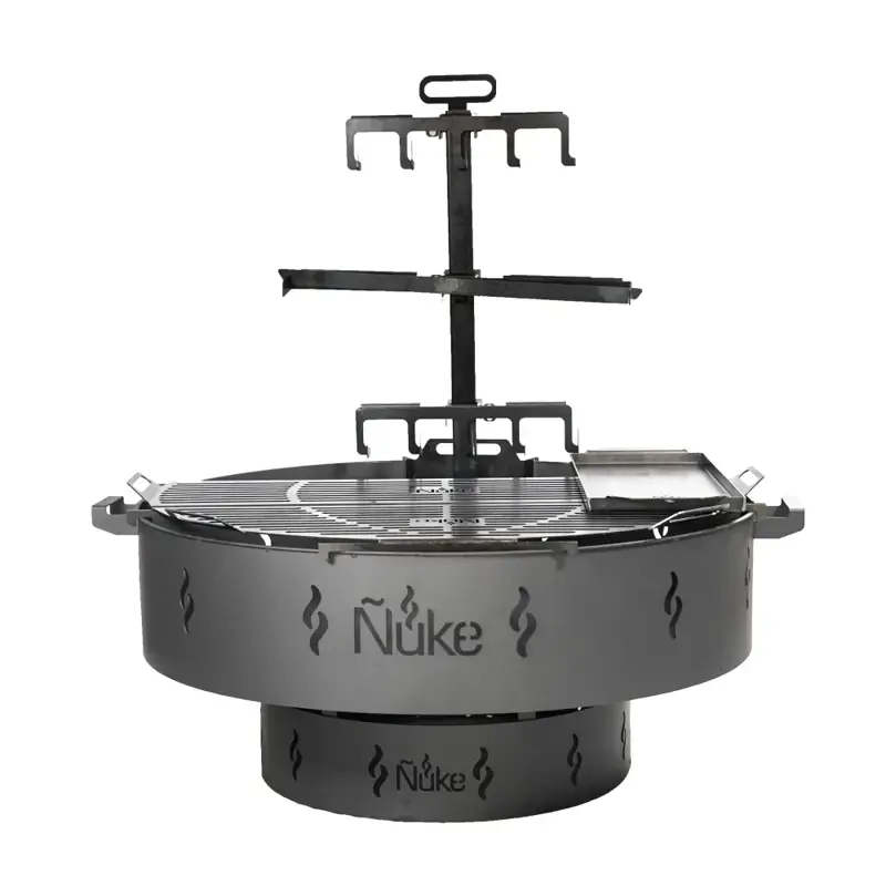 Incluye emparrillado semicircular, plancha asador, pala y atizador. Posee como adicional una funda para protegerla de sol y la lluvia. Reuniendo las mejores características del fogón 80 y 80 P, nuestro fogón 100 se convertirá, no solo en tu gran aliado en la cocina, sino también en un punto de encuentro. El mismo cuenta con un emparrillado semicircular que te permite realizar cocción a la llama o las brasas, una cruz que te permitirá usarlo de asador, creando así innumerables variantes de cocción a la hora de usarlo. Su diseño permite una llama constante debido a su pared de resguardo del viento, la cual permite el flujo necesario de aire para mantener encendido el fuego.