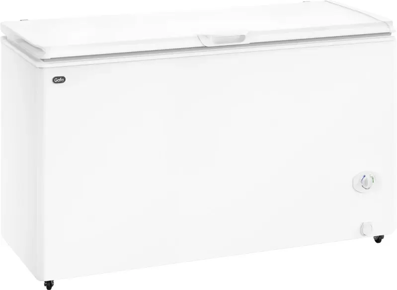El freezer GAFA FGHI400B-XL tiene un diseño tradicional horizontal en color blanco. Para organizar mejor los productos almacenados, cuenta con canastos contenedores para accesibilidad inmediata. Además, posee motor inverter y gas ecológico.