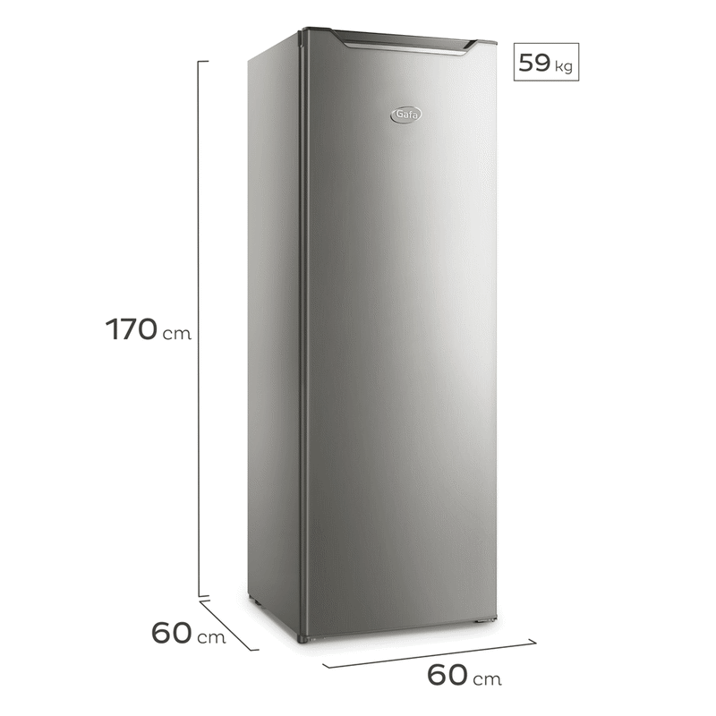 De diseño compacto con 60 cm de ancho y 245 litros de capacidad total, el Freezer vertical GAFA GFUP17P5HRG ofrece un amplio espacio de almacenamiento, ocupando poco espacio en tus ambientes. Cuenta con 7 cajones en su interior, que facilitan la organización y visualización de tus alimentos congelados, brindando practicidad a tu día a día. Desde el panel de control podrás configurar fácilmente la temperatura de tu Freezer. Este equipo cuenta con 3 niveles de frío: mínimo, medio y máximo. Su diseño resulta sumamente flexible, gracias a su puerta reversible que permite ajustar el sentido de apertura, y a sus pies regulables ubicados en su base, que permiten regular la altura del Freezer, para tu mayor comodidad. PANEL DE CONTROL DE TEMPERATURA Desde el panel de control podrás configurar la temperatura de tu freezer. Posee tres niveles de frío: mínimo, medio y máximo. PUERTA REVERSIBLE Para tu mayor comodidad de uso, podrás ajustar el sentido de apertura de la puerta del freezer. PIES REGULABLES Podrás regular la altura de los pies, ubicados en la base del freezer. 7 CAJONES Practicidad y amplio espacio de almacenamiento. Los cajones facilitan la organización y visualización de los alimentos congelados. ____________________________ ESPECIFICACIONES » Marca: Gafa » Color: Gris Plata » Alto (cm): 170 » Ancho (cm): 60 » Profundidad (cm): 60 » Tipo: Vertical » Cantidad de puertas: 1 » Niveles de Enfriamiento: 3 » Puertas Reversibles: Si » Clasificación Energética: A+ » Gas Refrigerante: R600a » Panel de Control: Si » Capacidad Bruta lts: De 100 lts a 300 lts » N° de Certificado: DC-E-F8-020.2 » Certificadora: IRAM » Modelo: GFUP22P5HRG » N° de Certificado: DC-E-F8-020.2 » Certificadora: IRAM » Origen: China » Garantía: 12 meses » Empresa: ARF » Manual de Usuario: