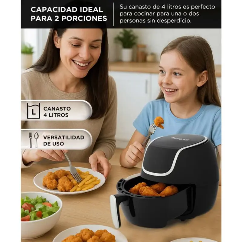 Su canasto de 4 litros es ideal para familias pequeñas, personas solas o parejas. Cociná lo justo, sin sobras.