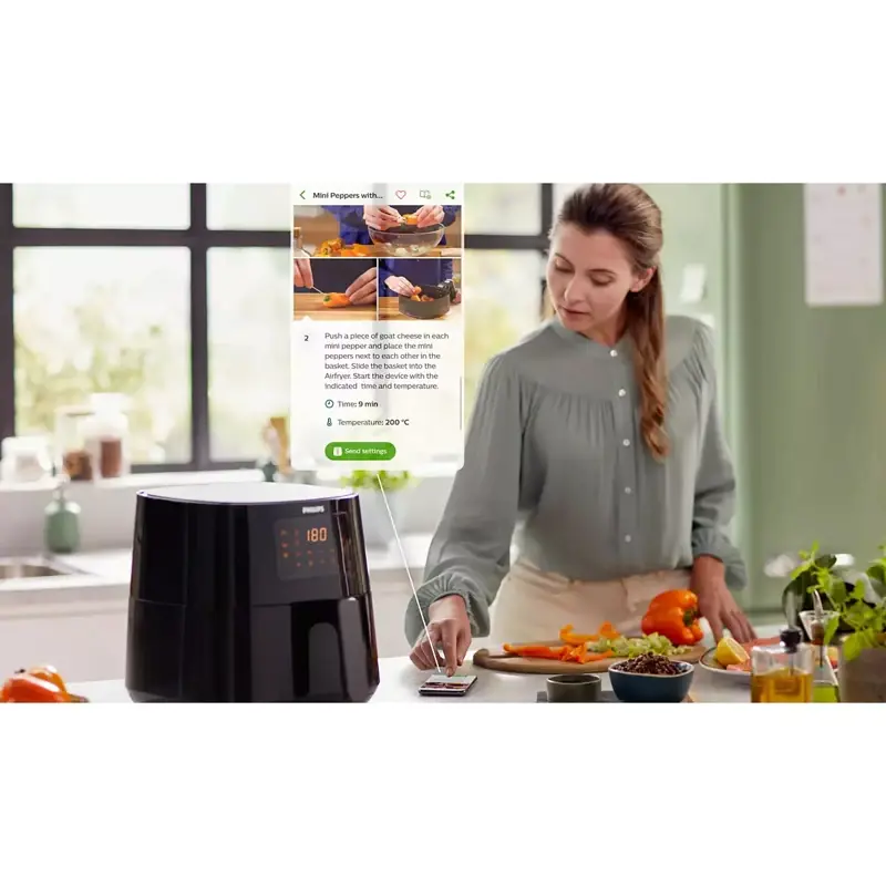 Elija una receta, envíela a la Airfryer y supervise el progreso de la cocción desde la comodidad de su sofá. Cuando su plato esté listo, recibirá una alerta.