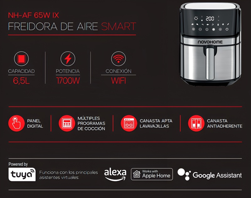NOVOHOME AIRFRYER 6.5 LTS 1700W INOX.