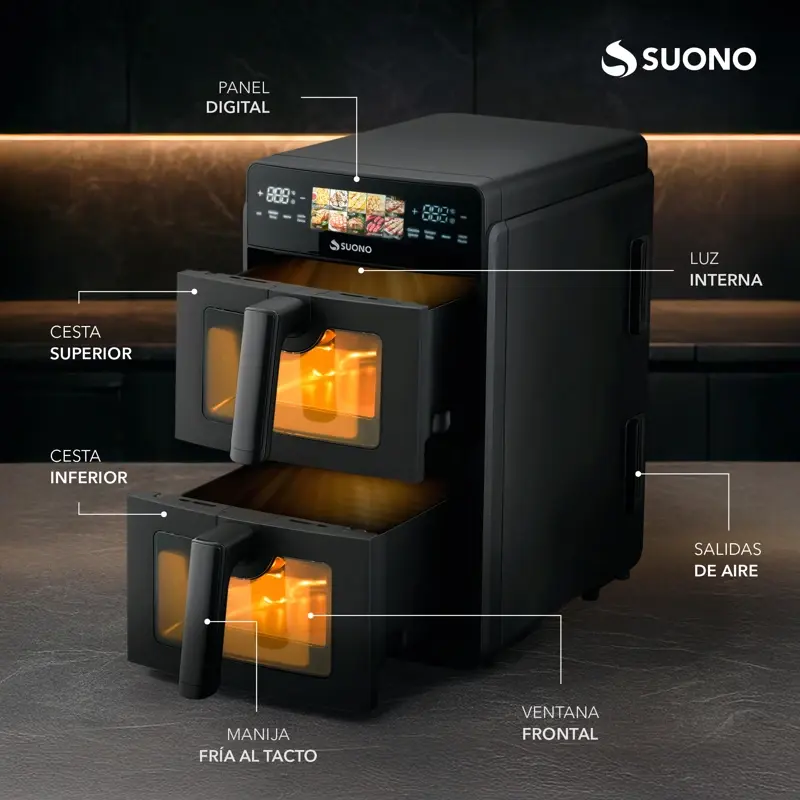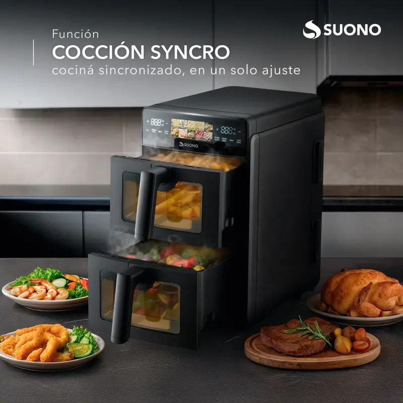 AirFryer Suono Doble Vertical: doble capacidad, doble sabor, cero complicaciones.