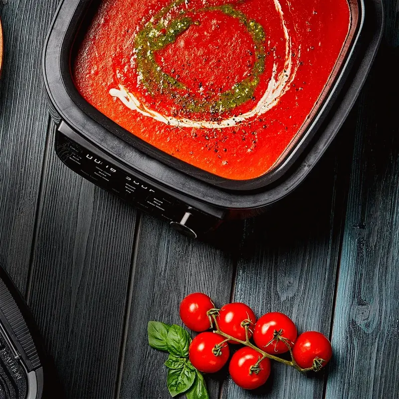- Tecnología de freír con aire, el aire circula rápidamente alrededor de la comida creando un sabor frito crujiente sin culpa