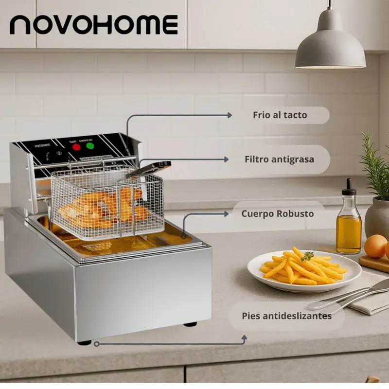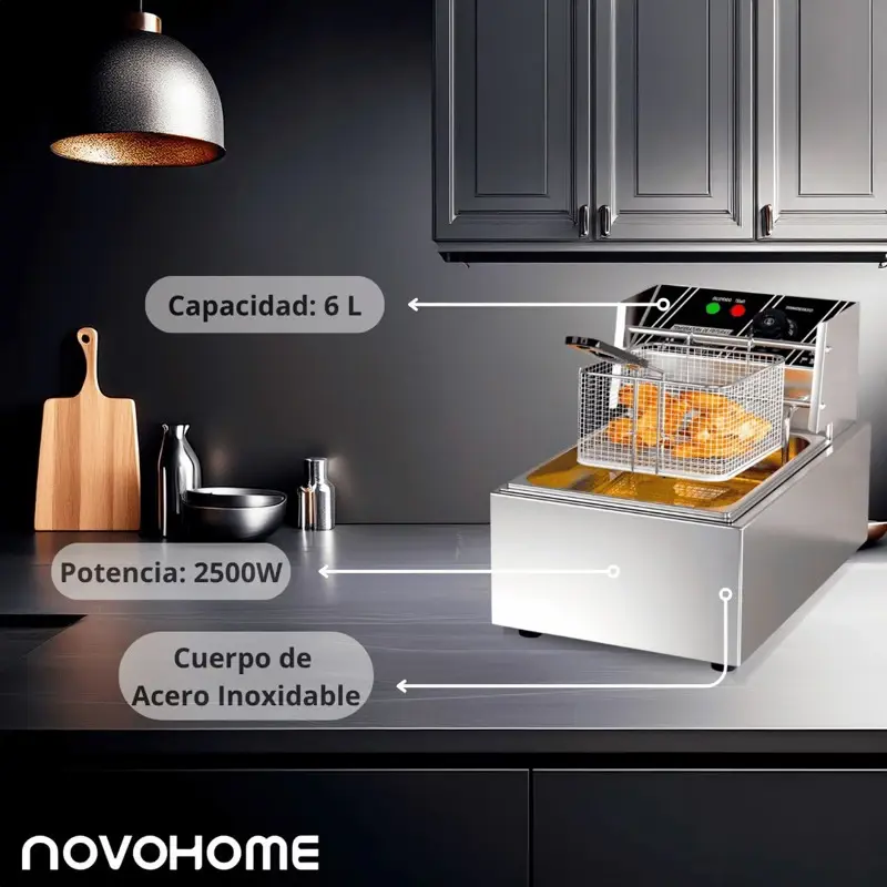 Freidora Eléctrica De Aceite 6L Novohome 2500 W Acero Inox. - NOVOHOME