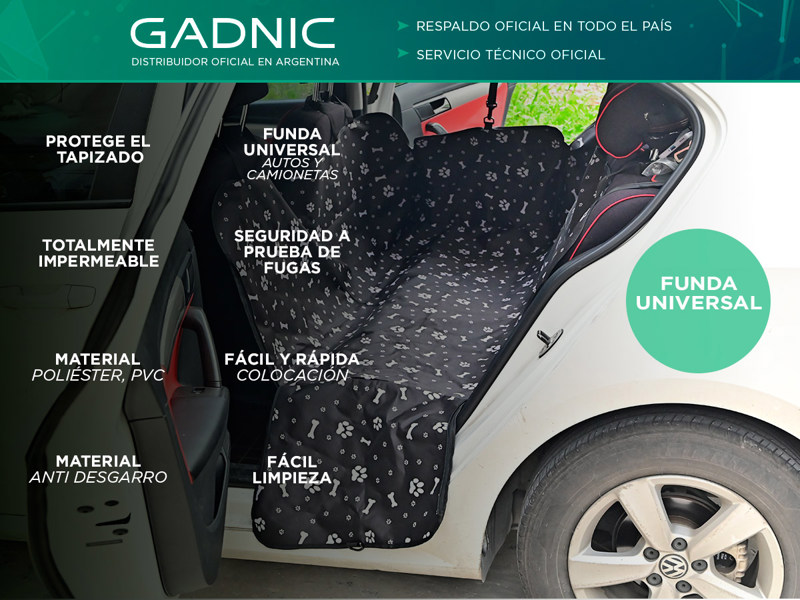 ¡Gadnic presenta su nueva linea de Funda protectora para el auto! Con nuestra funda protectora para perros podes llevar tu mascota a donde quieras protegiendo tu auto de todo tipo de suciedad y rasguños. Son muy fácil de colocar y de limpiar. Podes colocarla o guardarla rápidamente cuando necesites. Permite la colocion de forma completa de los 3 Cinturones de seguridad y lo que es muy importante mantiene las normas de seguridad en el vehículo. Tanto de la mascota como los acompañantes.