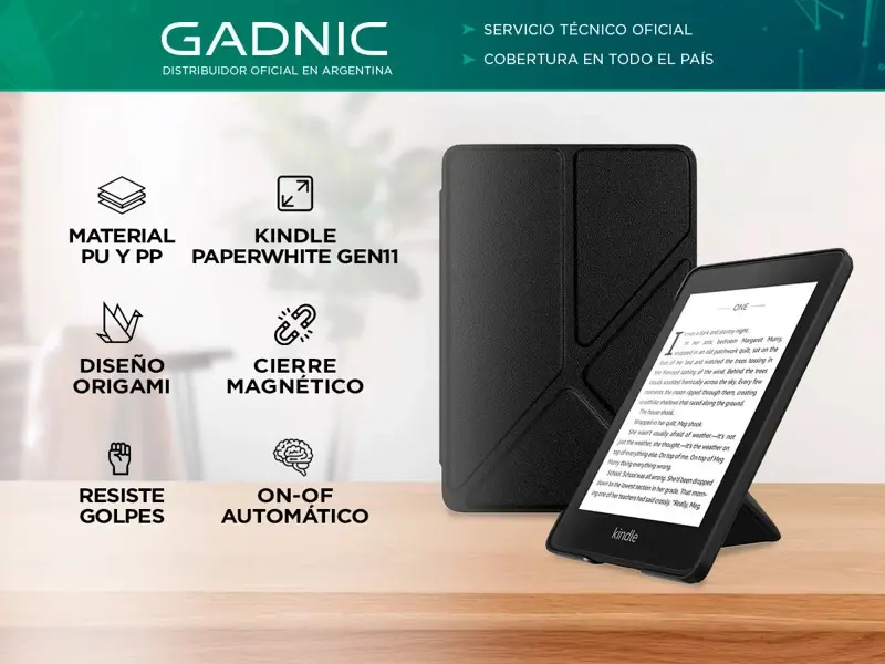 ¿Eres un apasionado de la lectura y posees el Kindle Paperwhite Gen 11? La Funda Origami Gadnic es la combinación perfecta de estilo y protección para tu preciado dispositivo. Diseñada meticulosamente para adaptarse a tu Kindle Paperwhite Gen 11, esta funda innovadora no solo ofrece una protección sólida, sino que también agrega un toque de elegancia a tu experiencia de lectura.