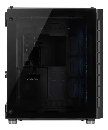 Tres paneles de vidrio templado transparente, instalados en la parte delantera, techo y una puerta lateral con bisagras de fácil acceso, proporcionan una vista impresionante de los componentes de alto perfil de su PC.