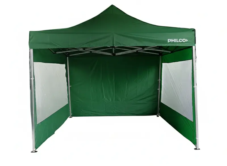 Transformá tu experiencia al aire libre con el gazebo Philco Verde 3x3 autoarmable. Ideal para camping, este gazebo se eleva fácilmente gracias a su armazón de aluminio y tela Oxford 550D, garantizando durabilidad y resistencia. Disfrutá del doble de protección con sus paredes incluidas, perfectas para mantenerte a salvo del sol y la lluvia.